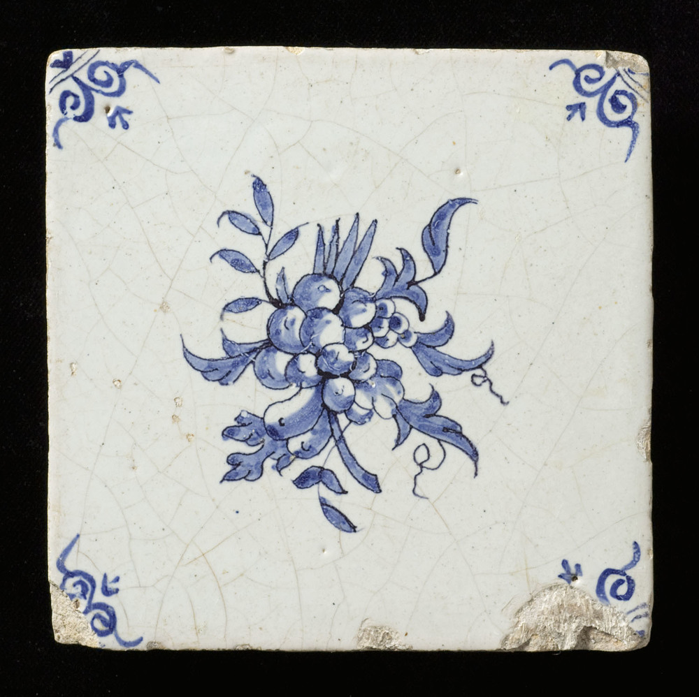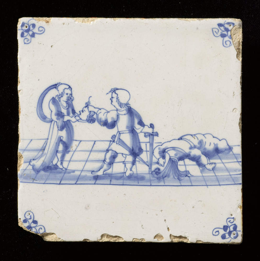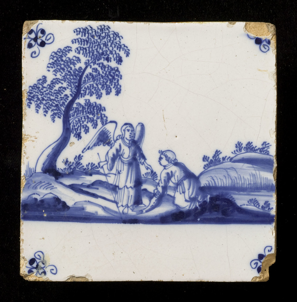 tegel van aardewerk met tinglazuur, voorstellende: h...