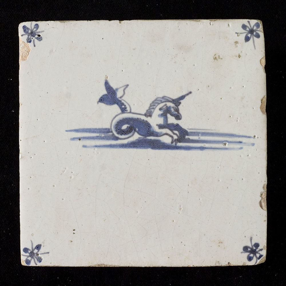 Tegel van keramiek, tinglazuur, voorstellende een my...