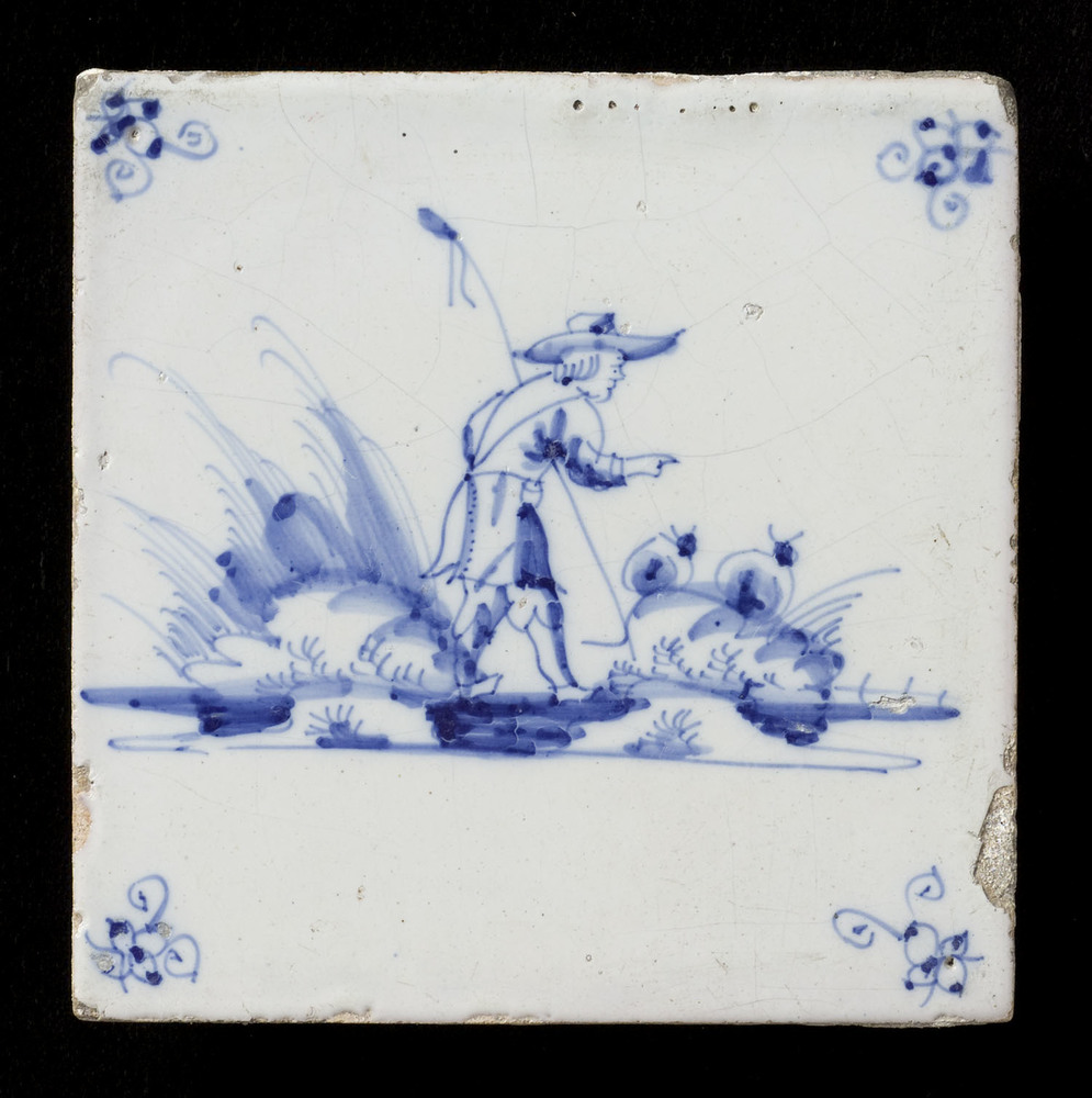 Tegel van keramiek, tinglazuur, voorstellende herder...