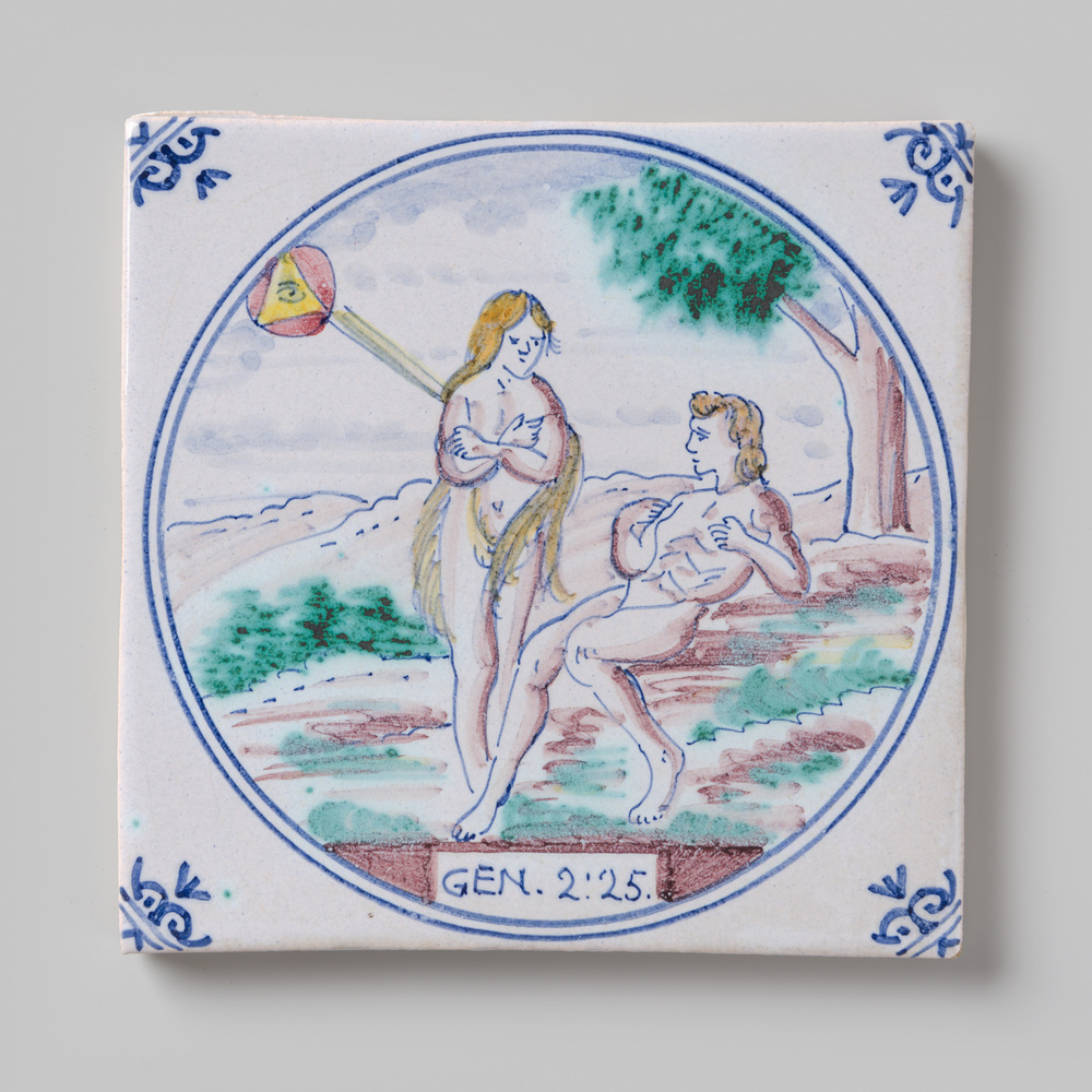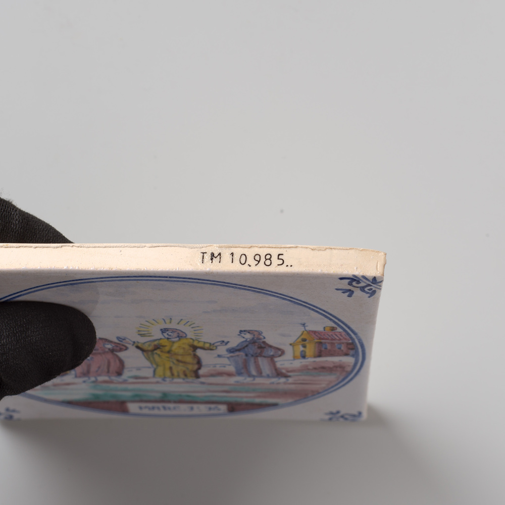 Tegel van aardewerk met tinglazuur, met voorstelling...