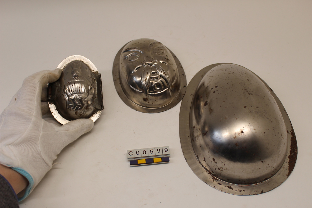 Drie aluminium paasei-vormen