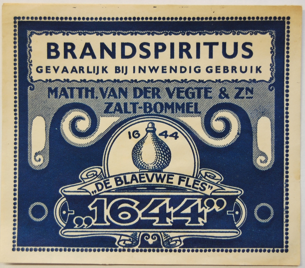 etiket voor een fles Brandspiritus van De Blauwefles...