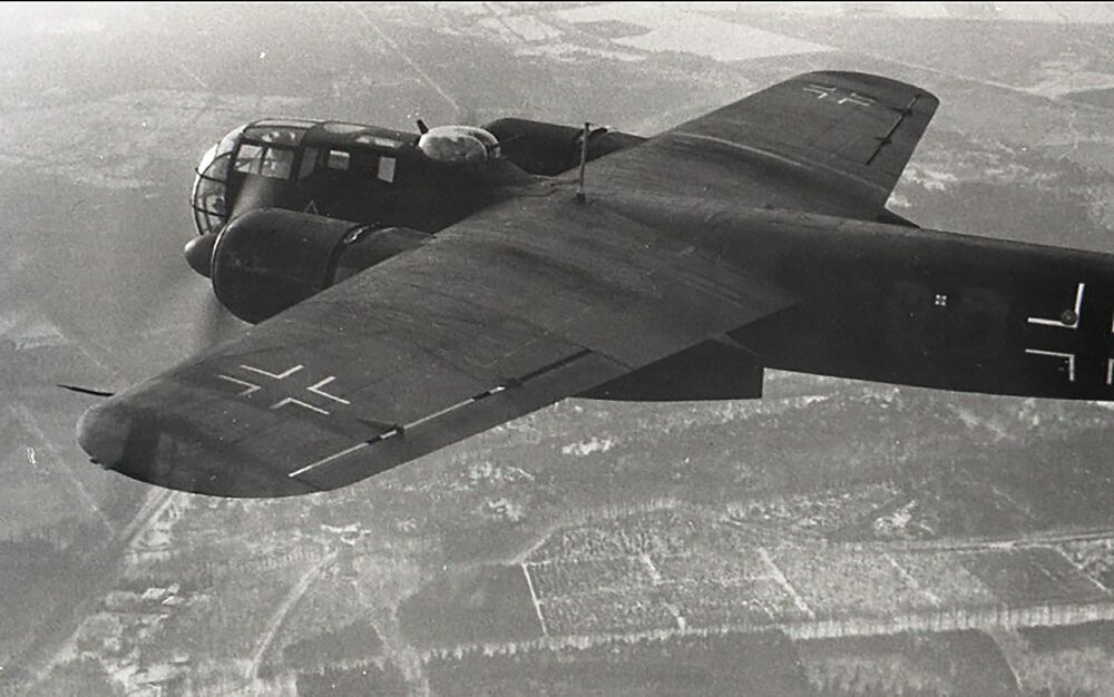 Foto van een Dornier 217 in de lucht, gemaakt vanuit...