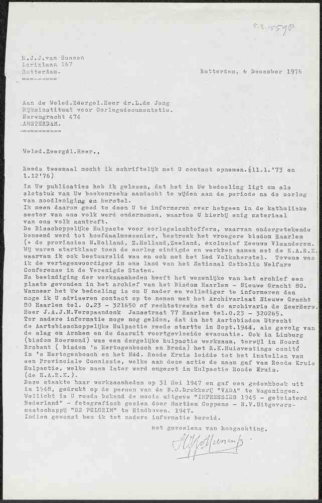 Brief aan L. de Jong, 1 december 1976 van H.J. van H...