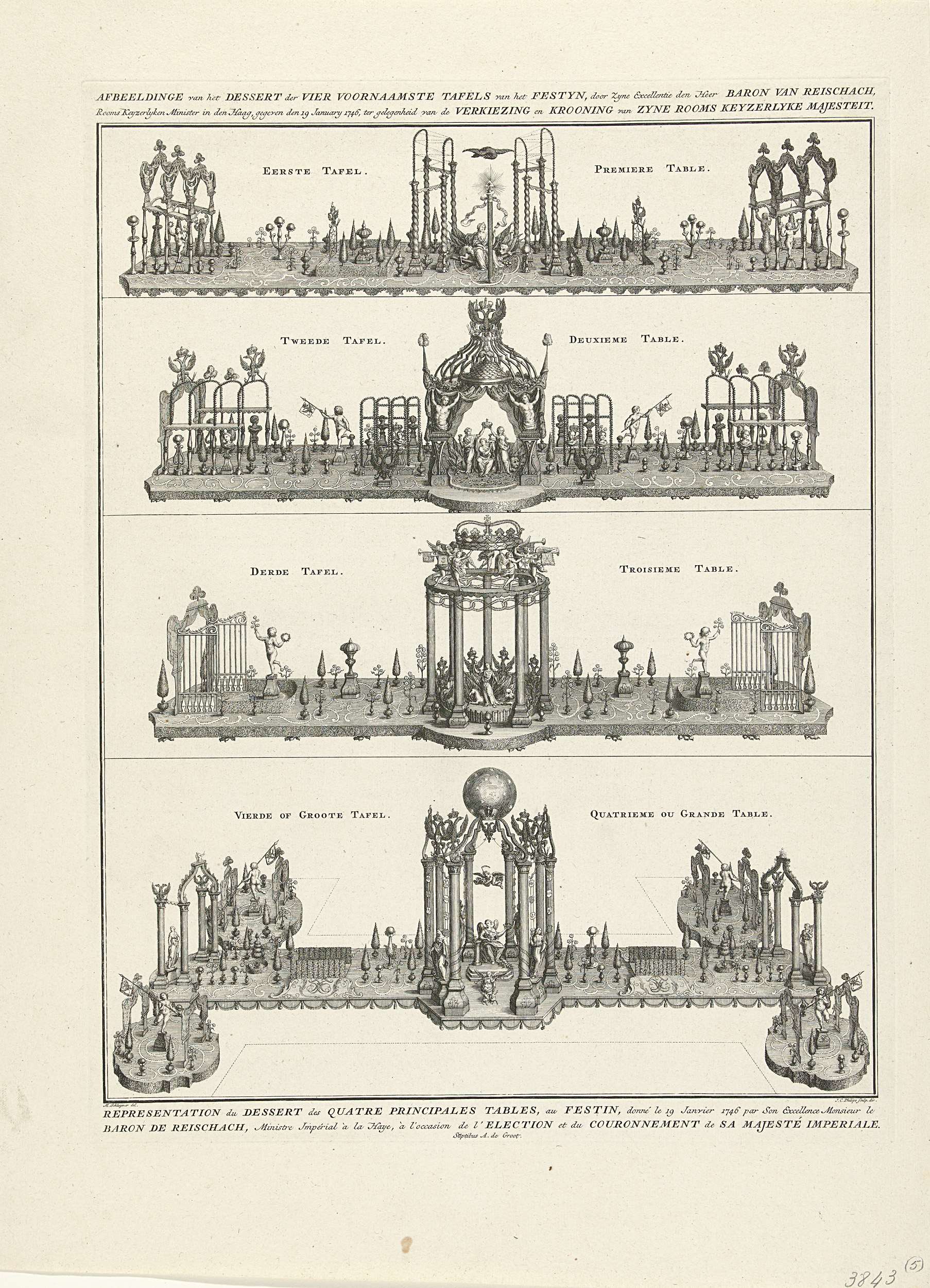 Titelprent van een plaatwerk over de kroning van Fra...