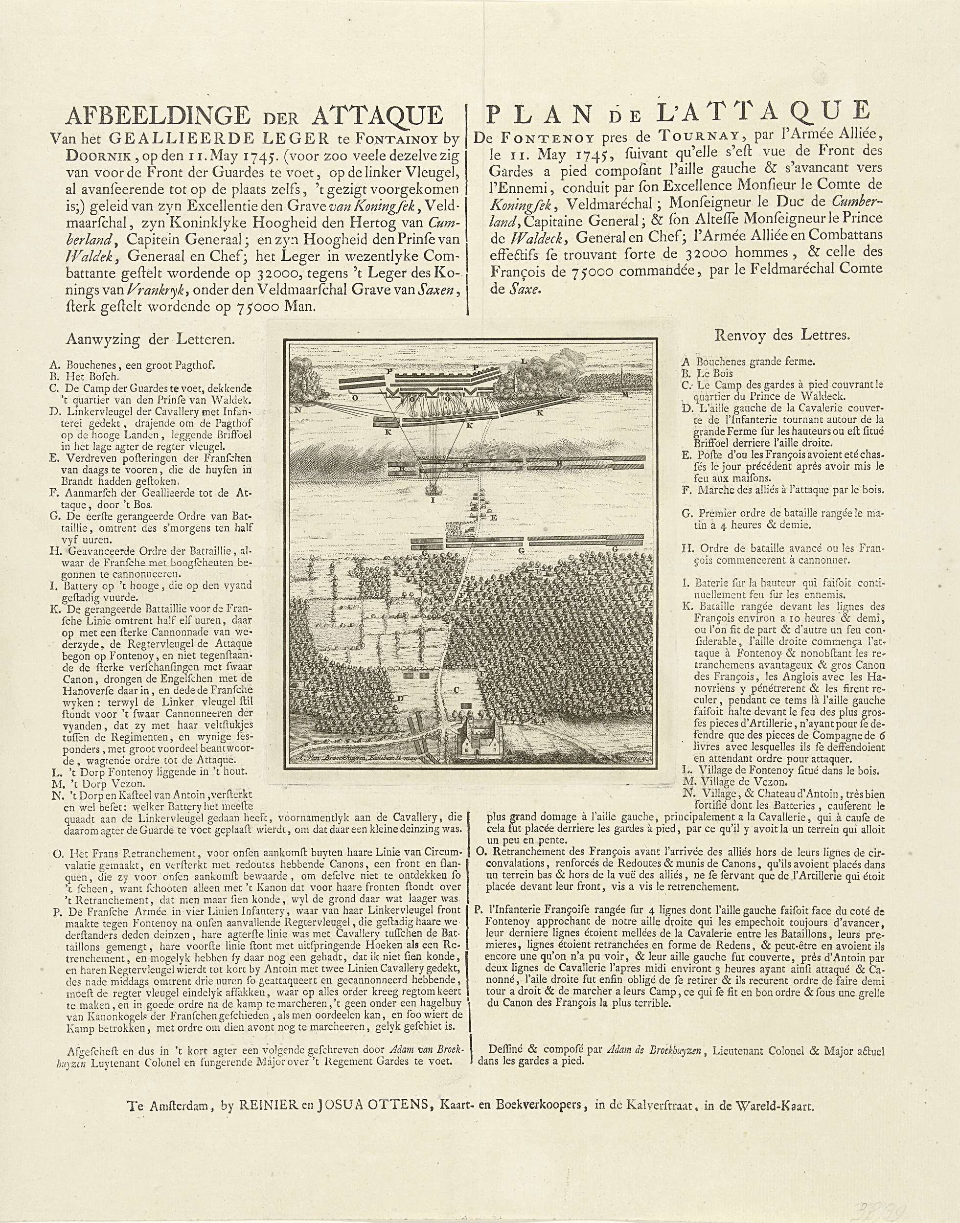Plan van de slag bij Fontenoy, 1745