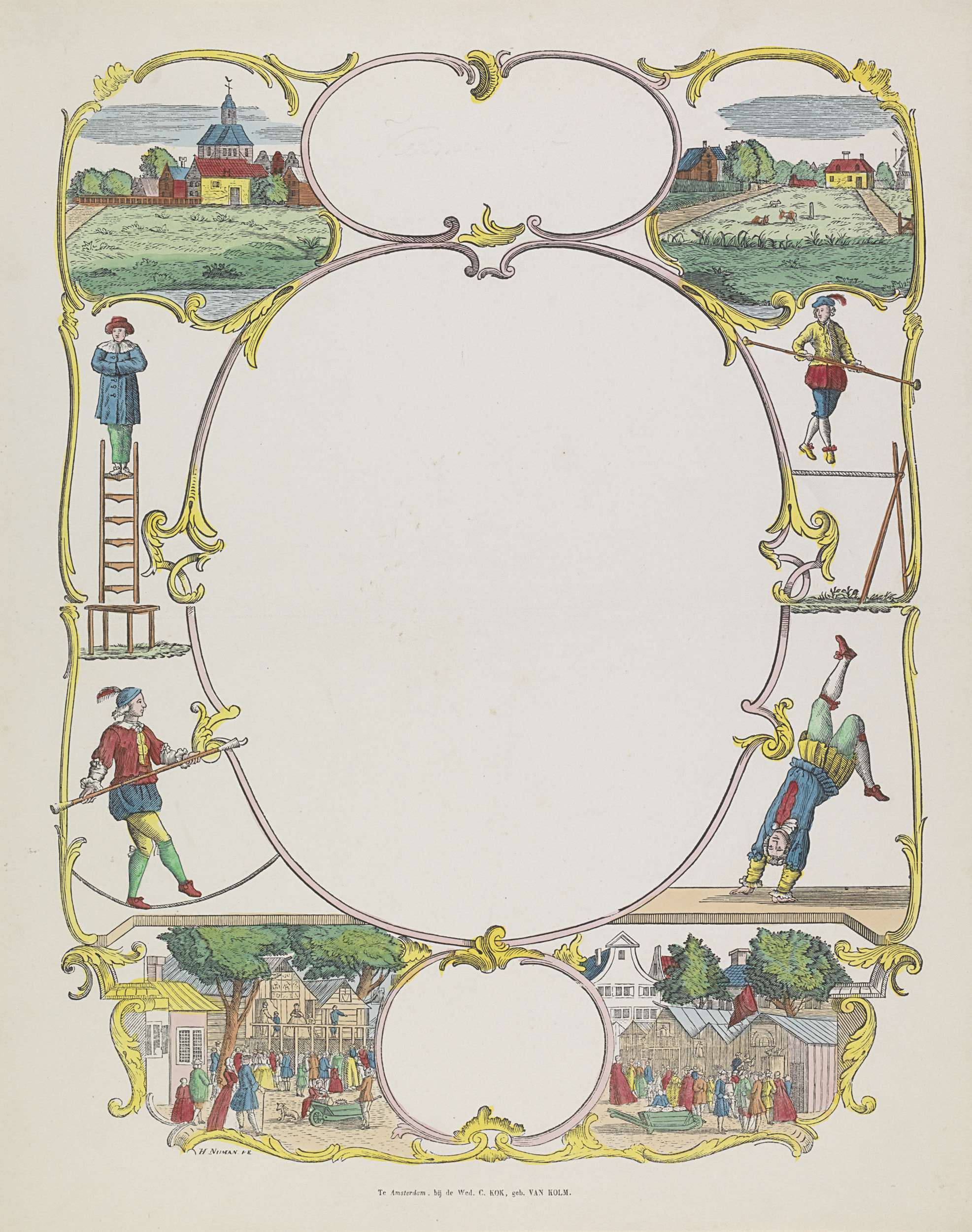 Wensbrief met een dorp, acrobaten en een kermis
