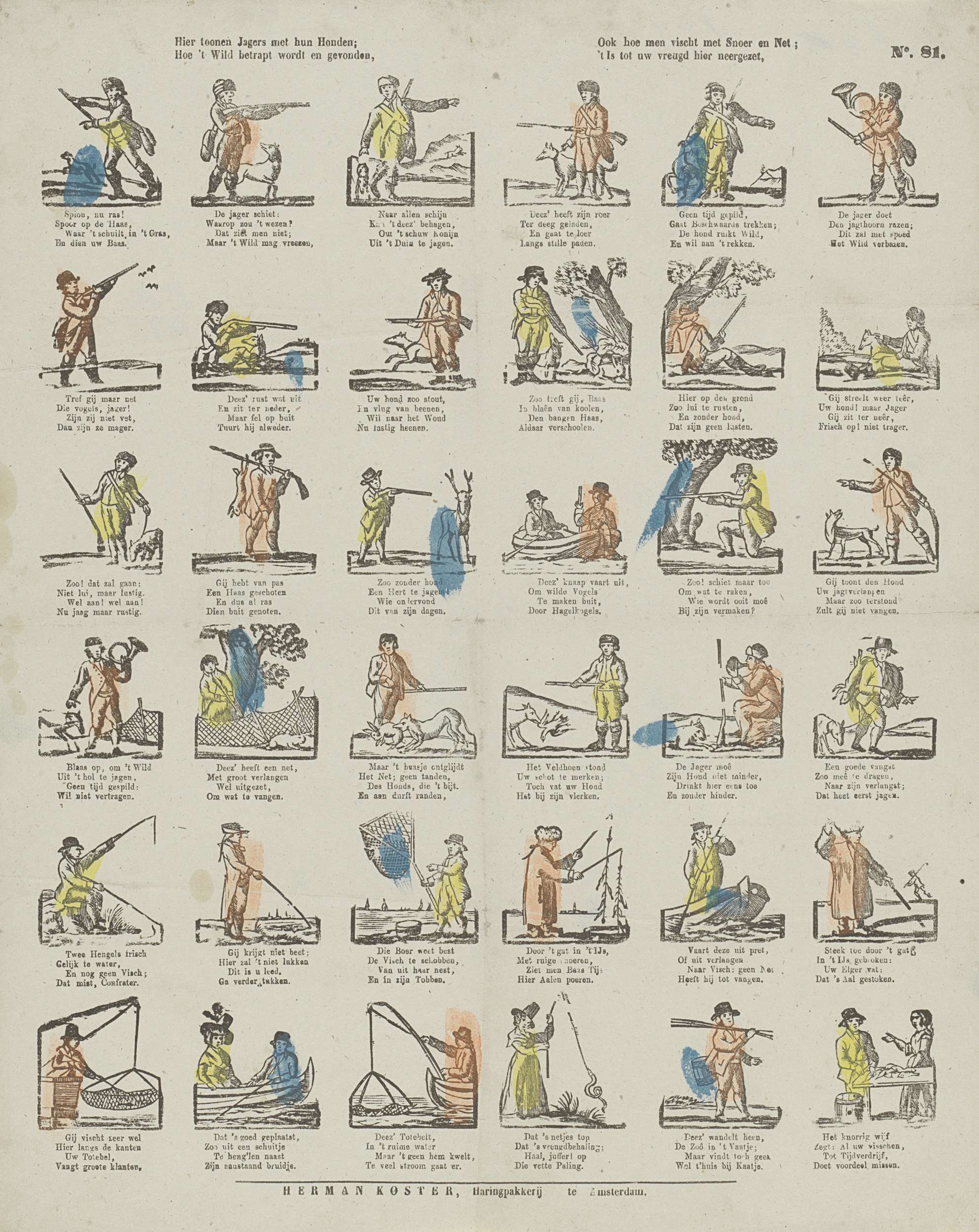 Hier toonen jagers met hun honden; / Hoe 't wild bet...