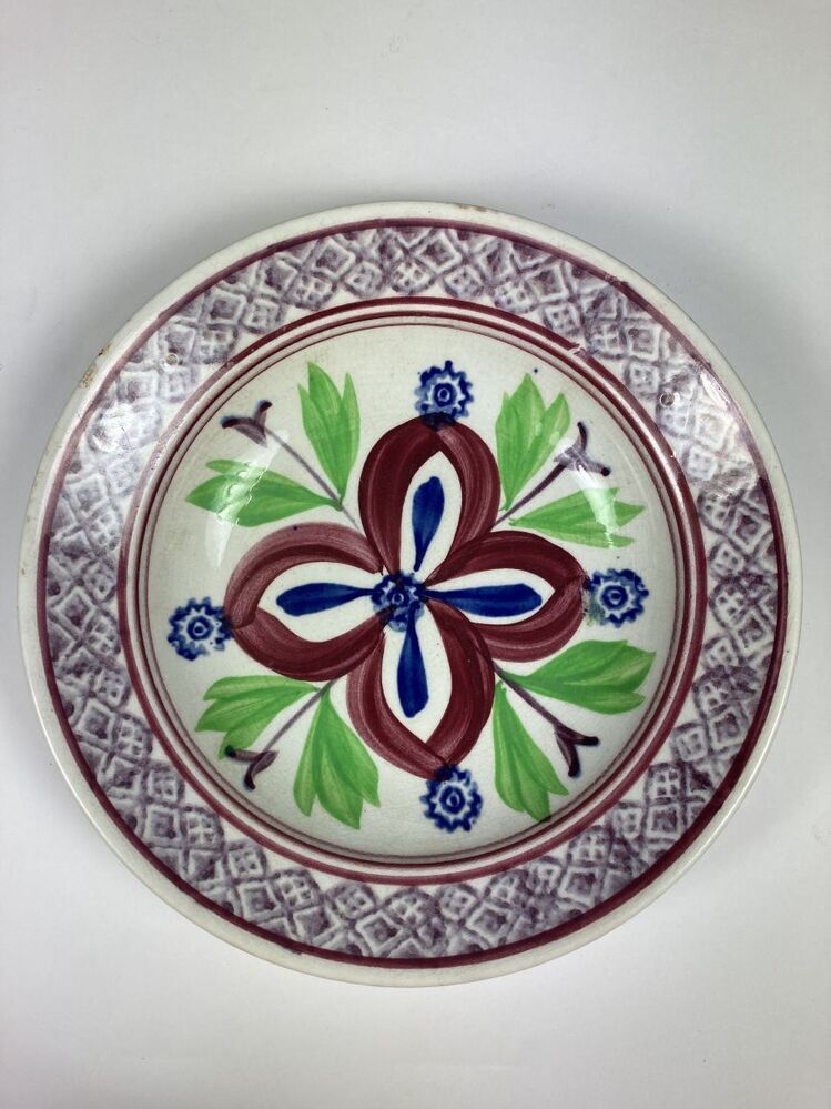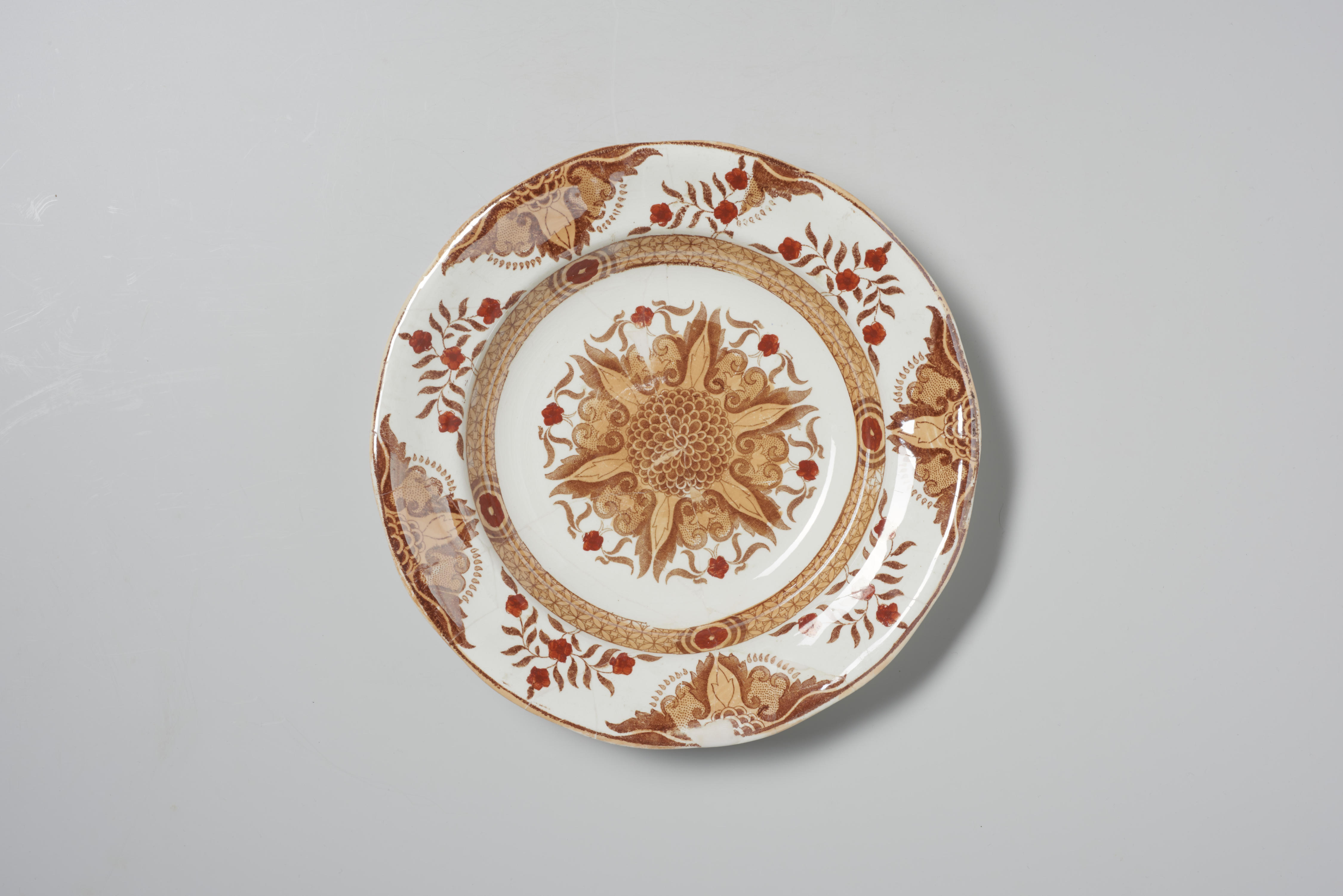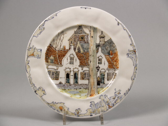 Bord, model 25P, met decor van hofje met boom, kerk ...