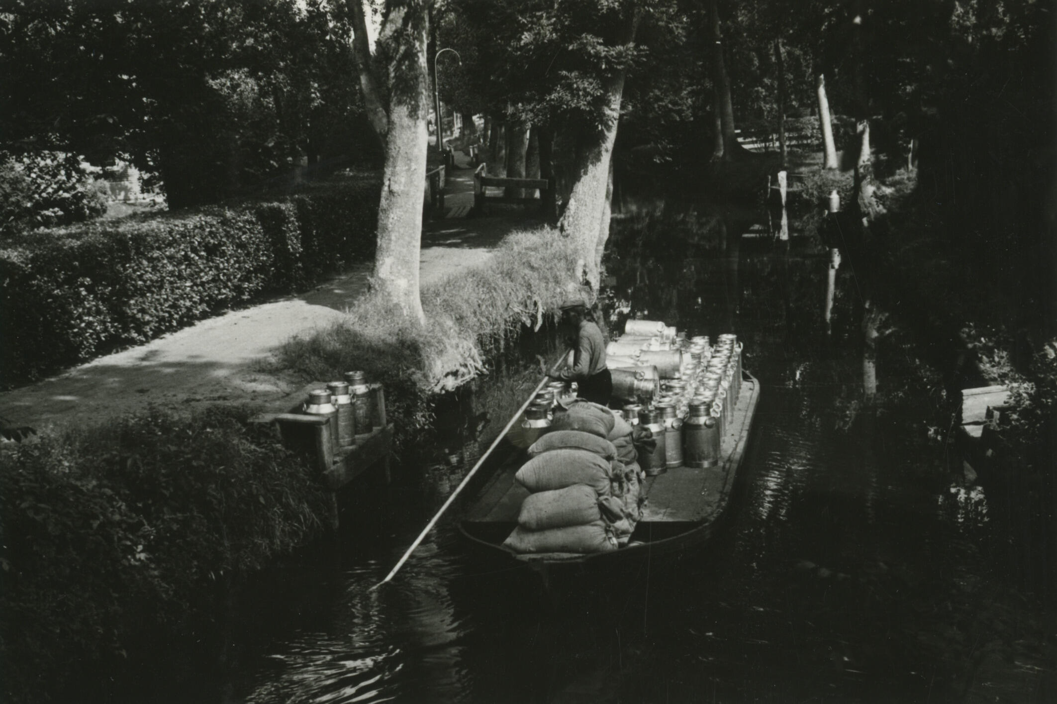 Boot in de gracht, Giethoorn, 1939 (zwart-wit foto)