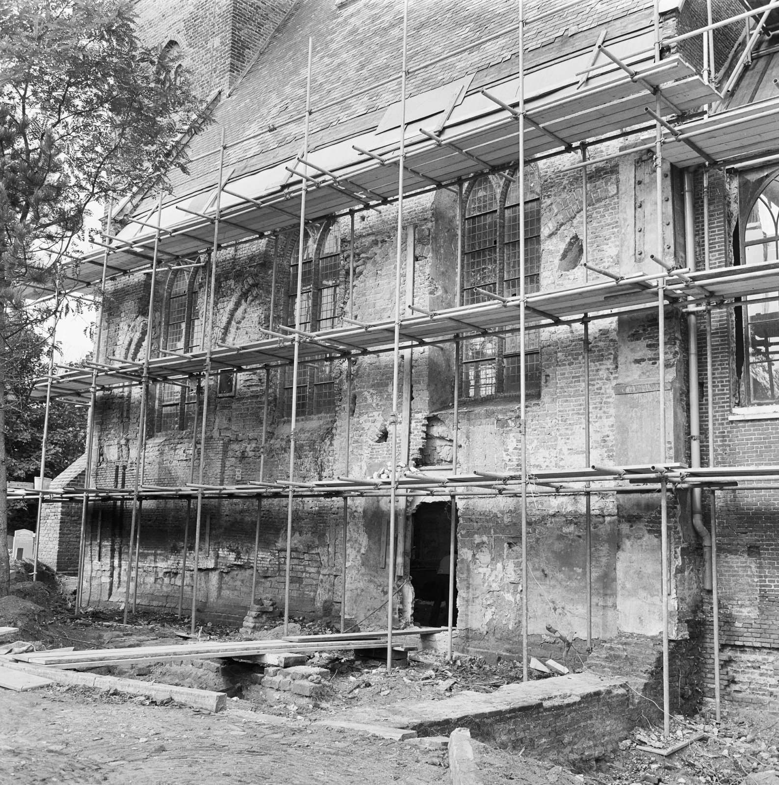 Hervormde kerk in de steigers tijdens restauratie: z...