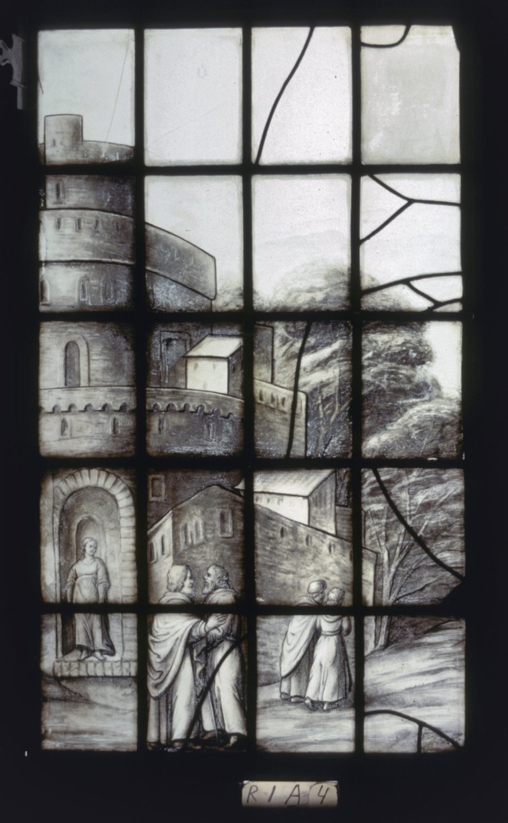 Interieur, gebrandschilderd glas, raam 1: "Rebecca b...
