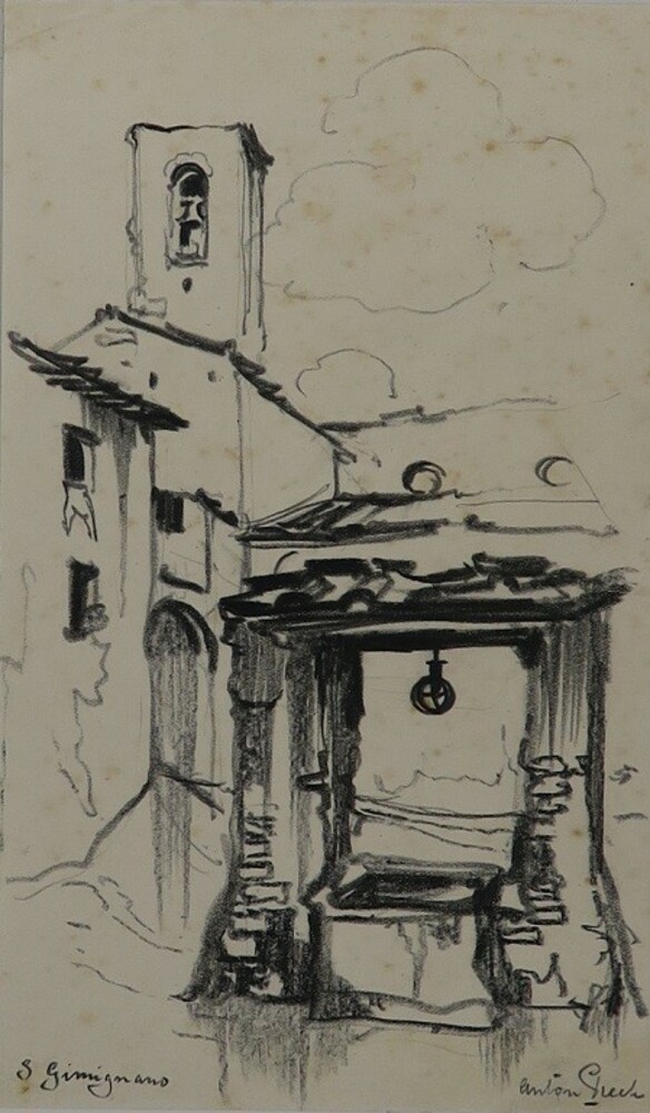 Waterput bij kerk te San Gimignano, Italië