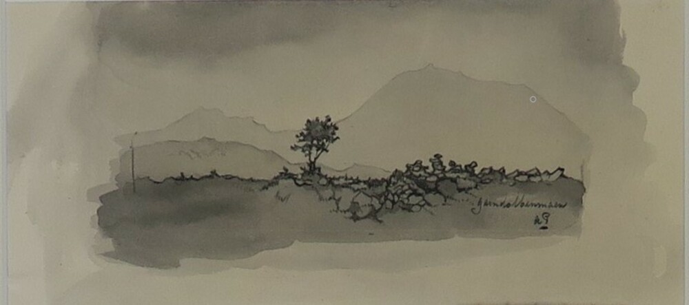 Zwart-wit schets, voorstudie kalenderplaat Stoomtram...