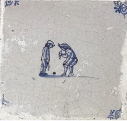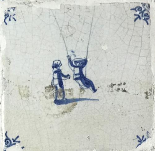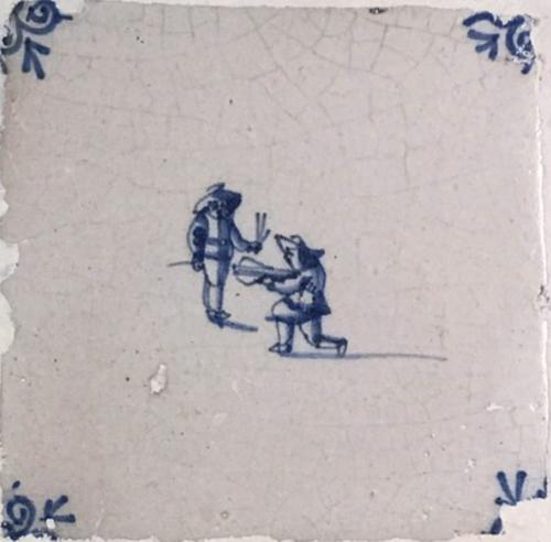 Tegel van aardewerk met tinglazuur voorstellende zui...