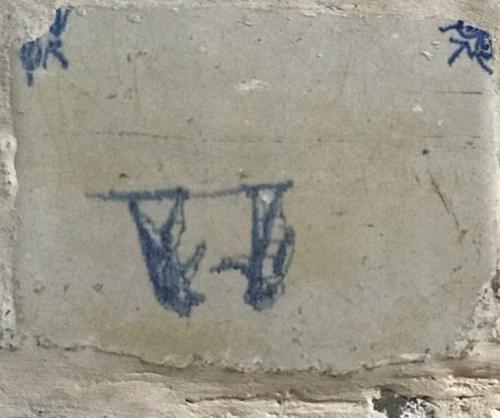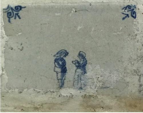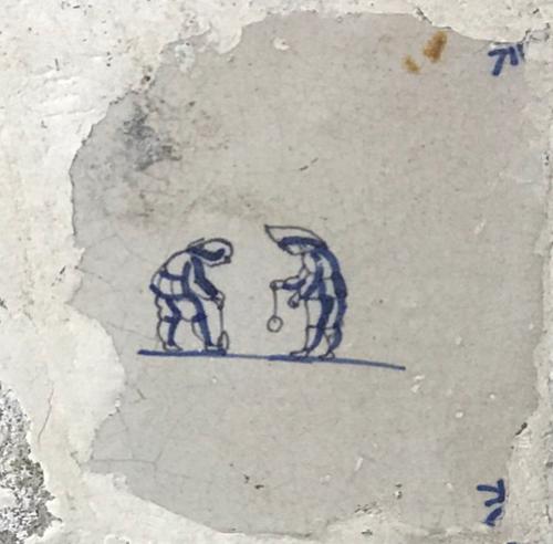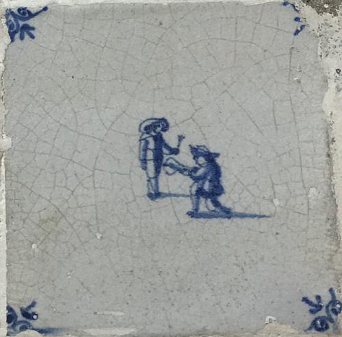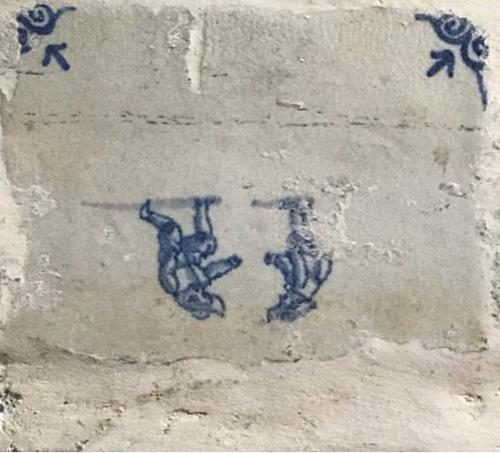 Tegel van aardewerk met tinglazuur voorstellende ? -...