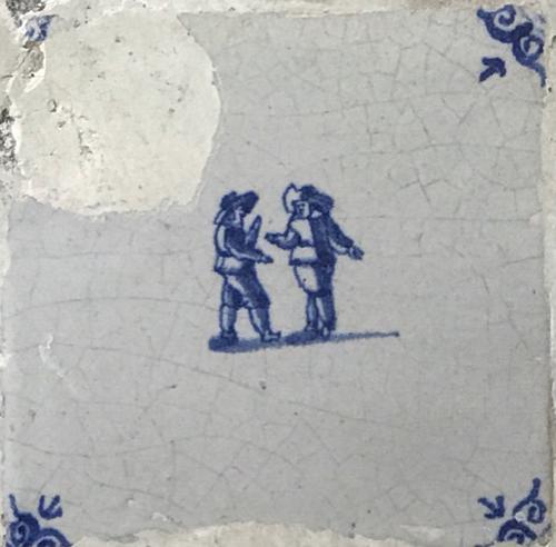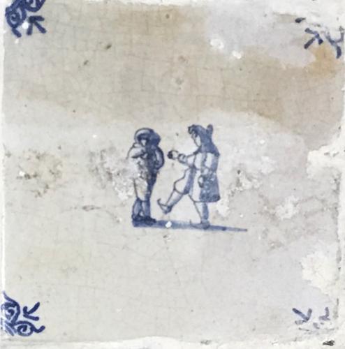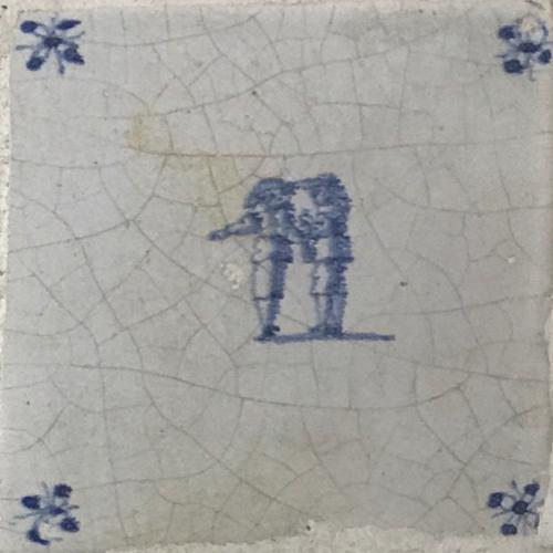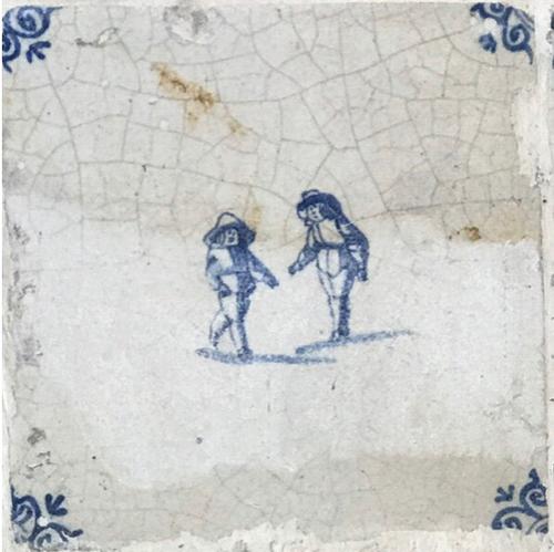 Tegel van aardewerk met tinglazuur voorstellende ste...