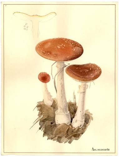 Aquarel met pen: Vliegenzwam