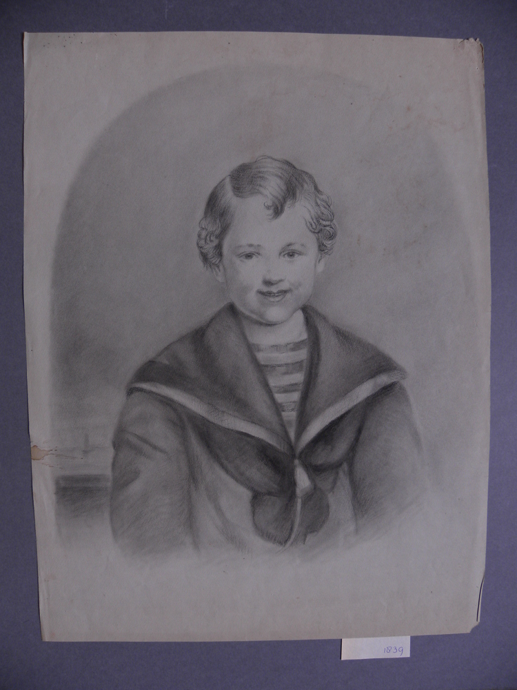 Pasteltekening voorstellende portret van jongen, gea...