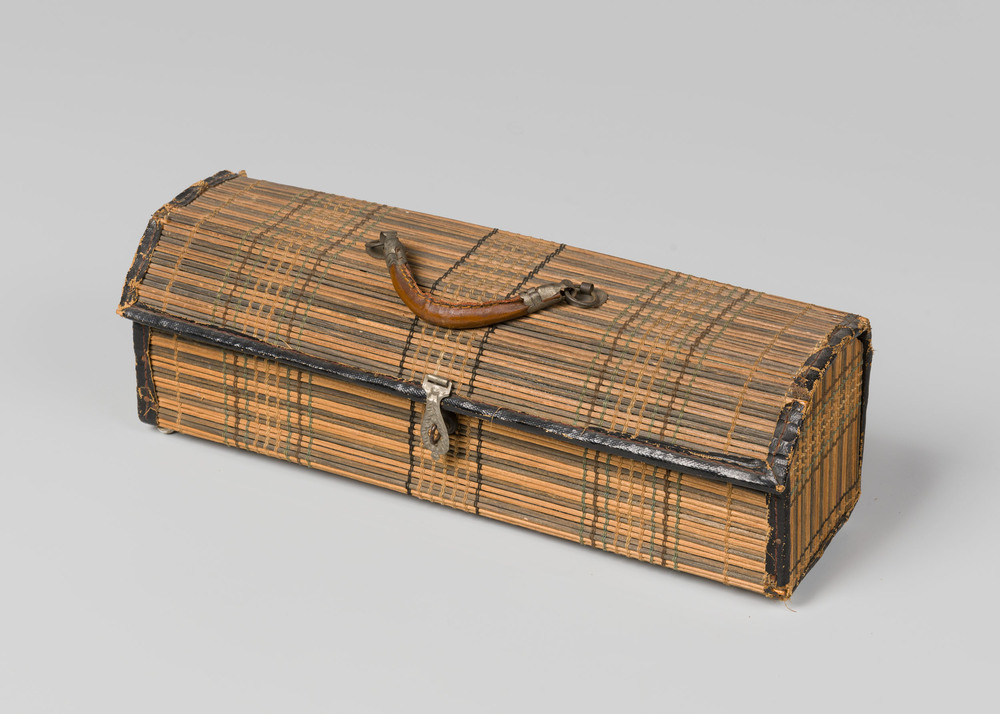 hoedendoos van leer voor hoge hoed, eind 19e eeuw