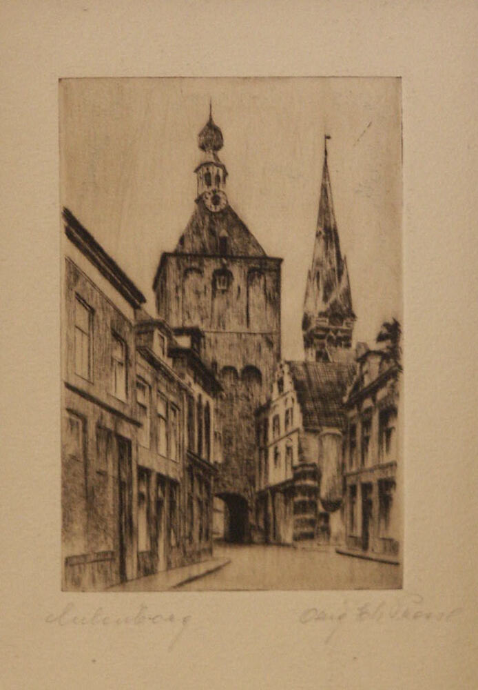 Ets, voorstellende de Binnenpoort te Culemborg vanaf...