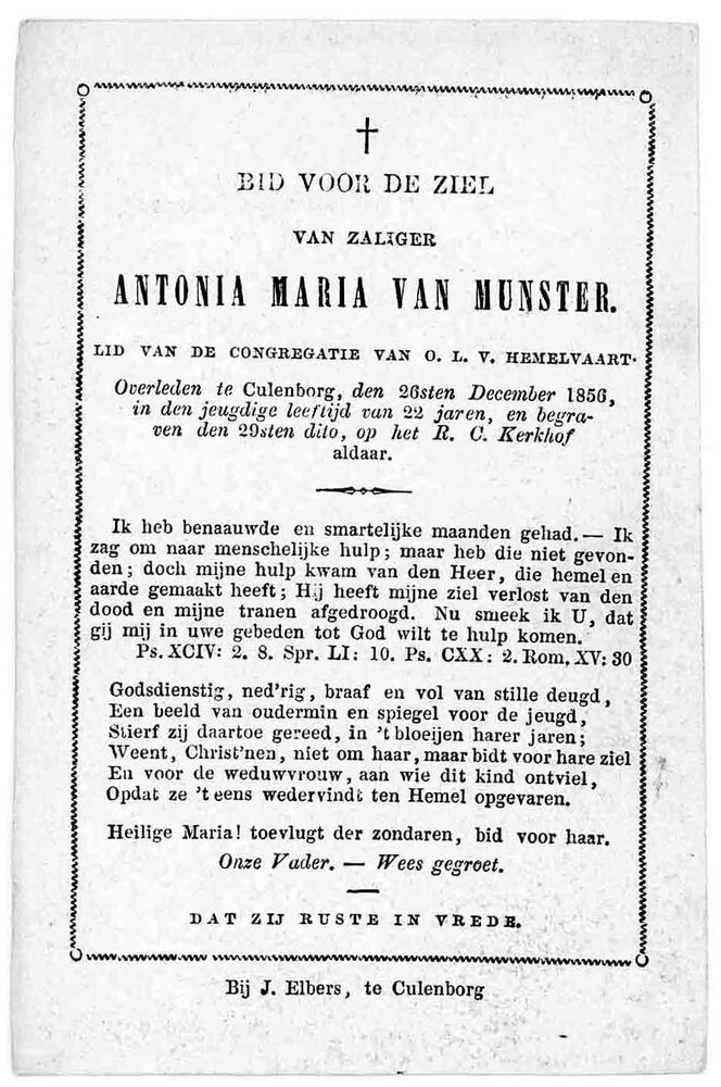 bidprent voor Antonia Maria van Munster. Geboren 183...