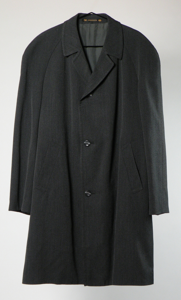 Halflange, donkergrijze, wollen herenjas