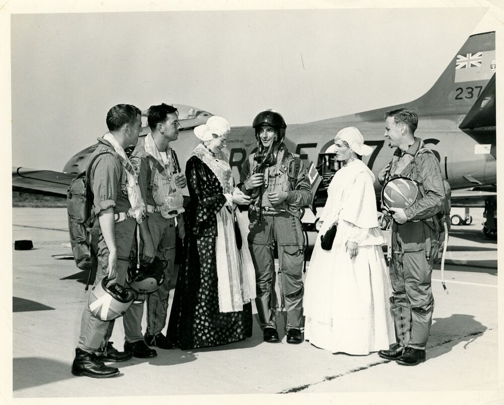 Dames in klederdracht bij RCAF F086