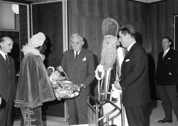 Sinterklaas en Ies Keijzer, burgemeester van Moerkap...
