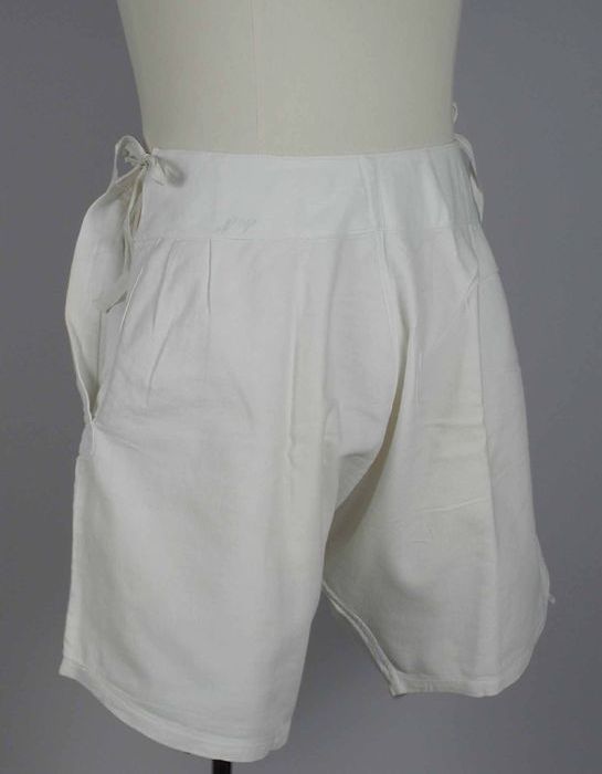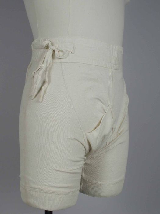 Wijde onderbroek van stevig wit keperkatoen, strikba...