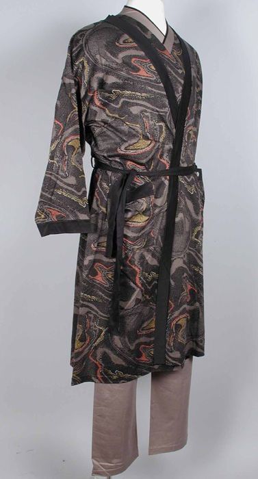 Lange ochtendjas van tricot katoen met bruin-zwart m...