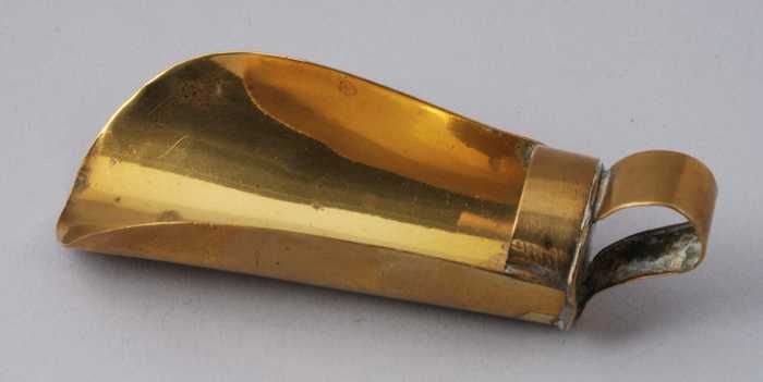 Messing miniatuur gruttersschep met handgreepje