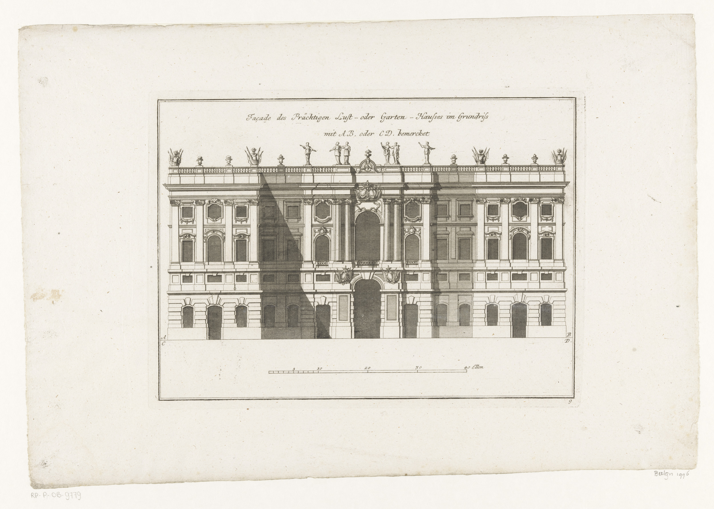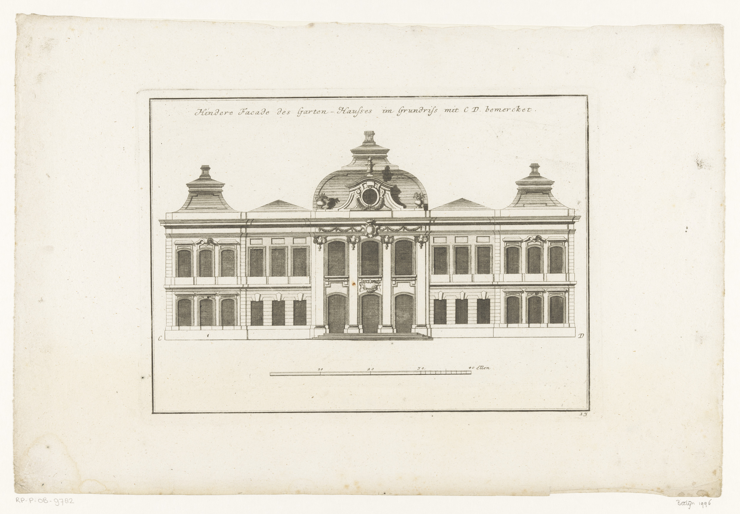 Achterfaçade van een tuinpaviljoen