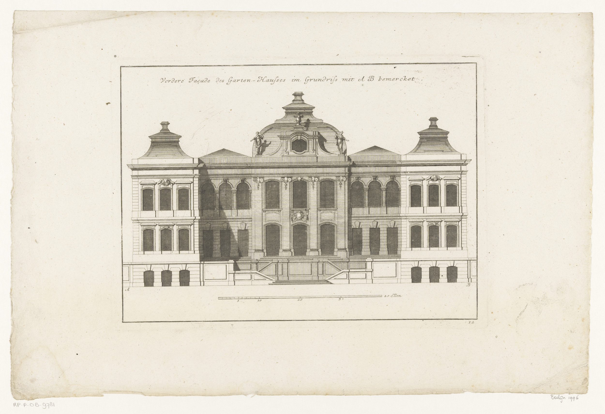 Frontfaçade van een tuinpaviljoen