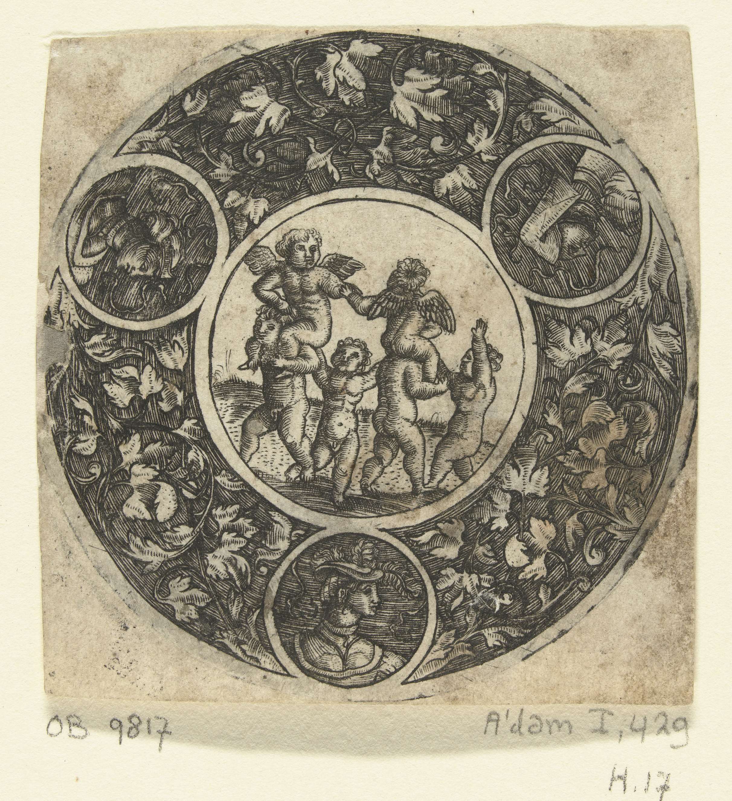 Schotel met vier kinderen en twee putti