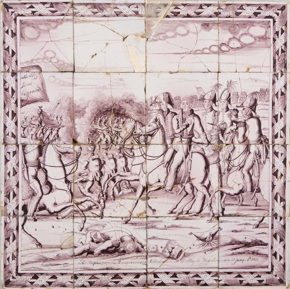 Tegeltableau van keramiek, tinglazuur, voorstellende...