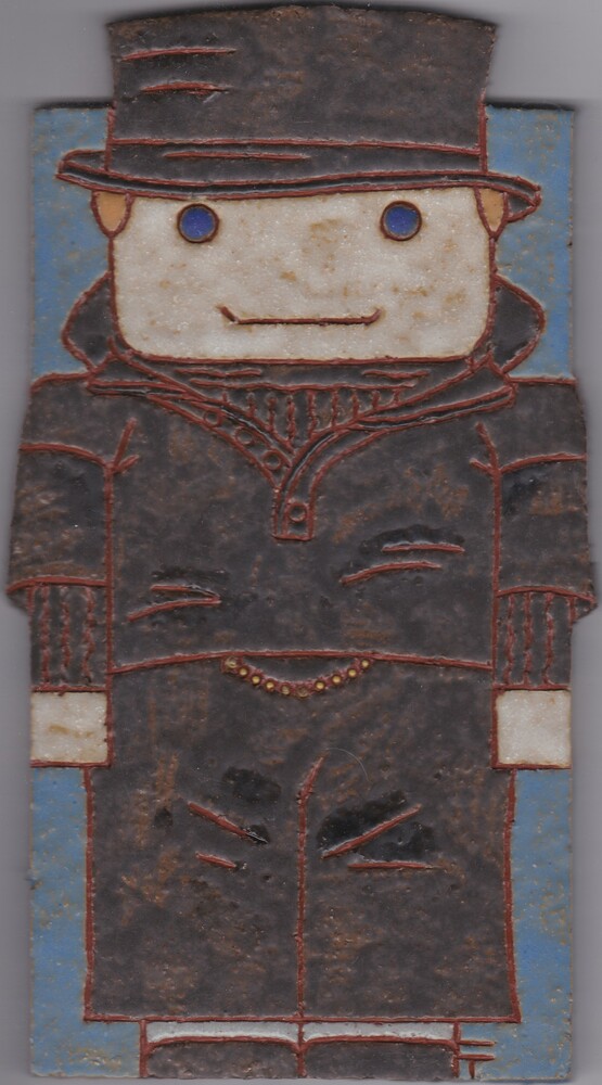 Tegel met ingekerfde lijnen, met voorstelling: stree...