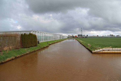 Sloot langs een kassencomplex in de Koekoekspolder, ...