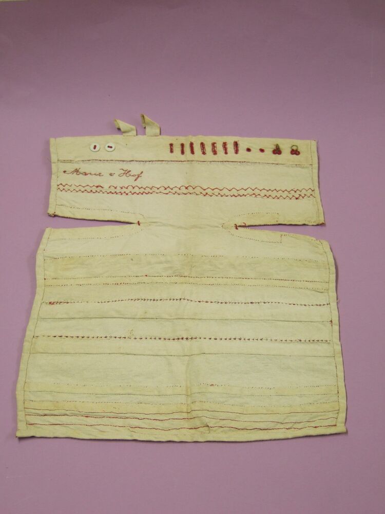 linnen lap met allerlei naaldvaardigheden, genaaid d...