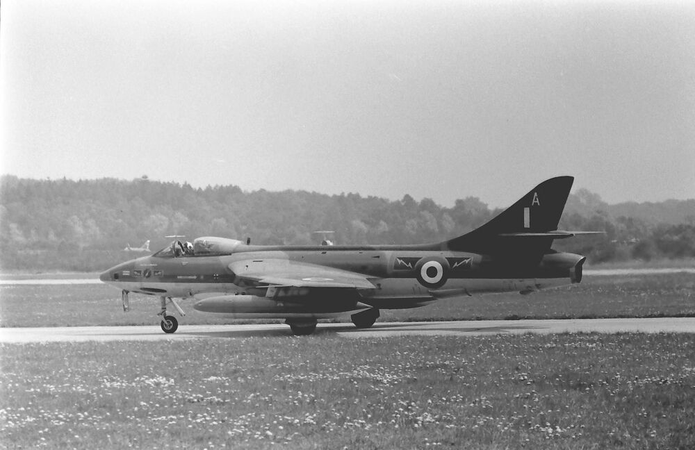 Hawker Hunter Royal Air Force op de rolbaan.