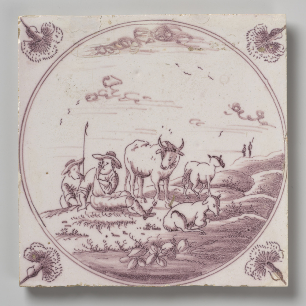 Tegel van keramiek, tinglazuur, voorstellende herder...