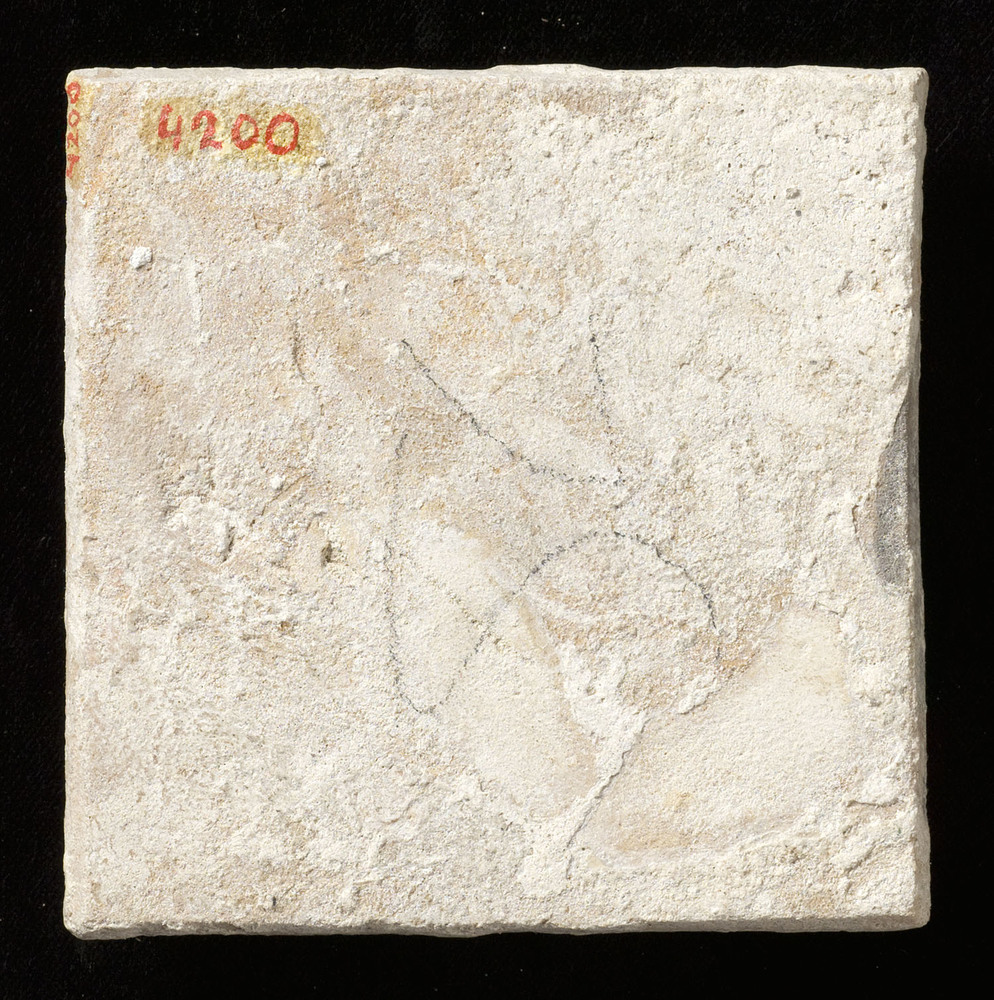 Tegel in tinglazuur, voorstellende een kunstenmaker ...