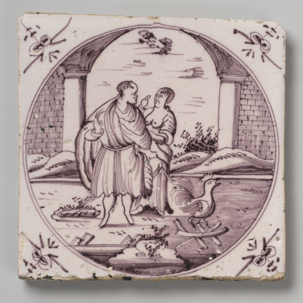 tegel van aardewerk met tinglazuur, voorstellende: P...