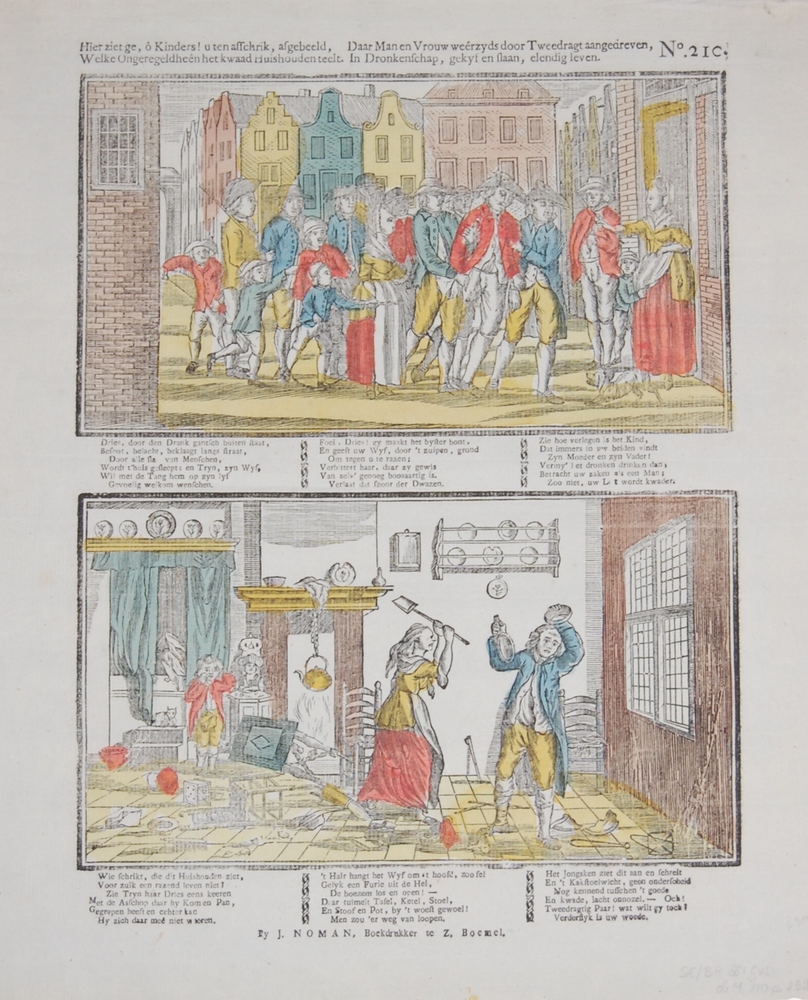 Centsprent, twee prentjes met dronken Dries en zijn ...