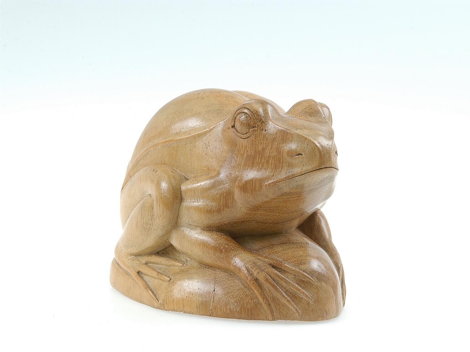 Houten beeld van een zittende kikvors of pad