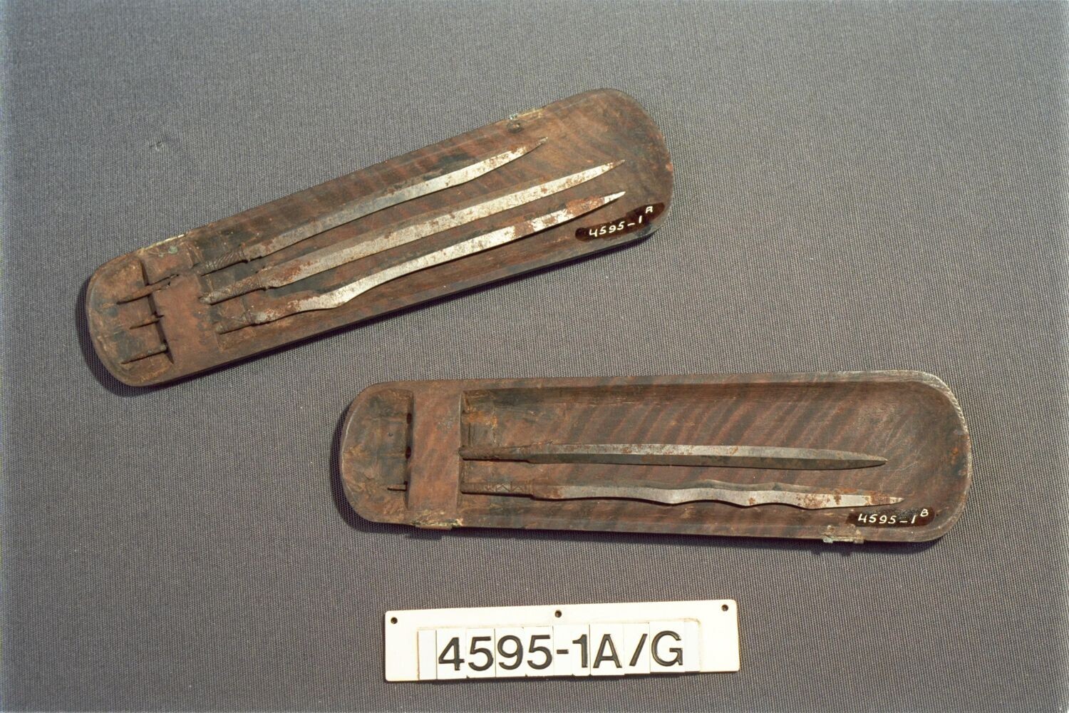 Houten houder voor zes hanengevechtsmessen