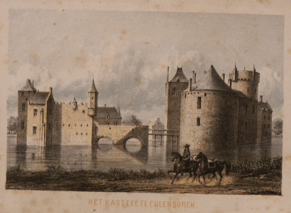 kleurenlitho voorstellende het kasteel te Culemborg ...