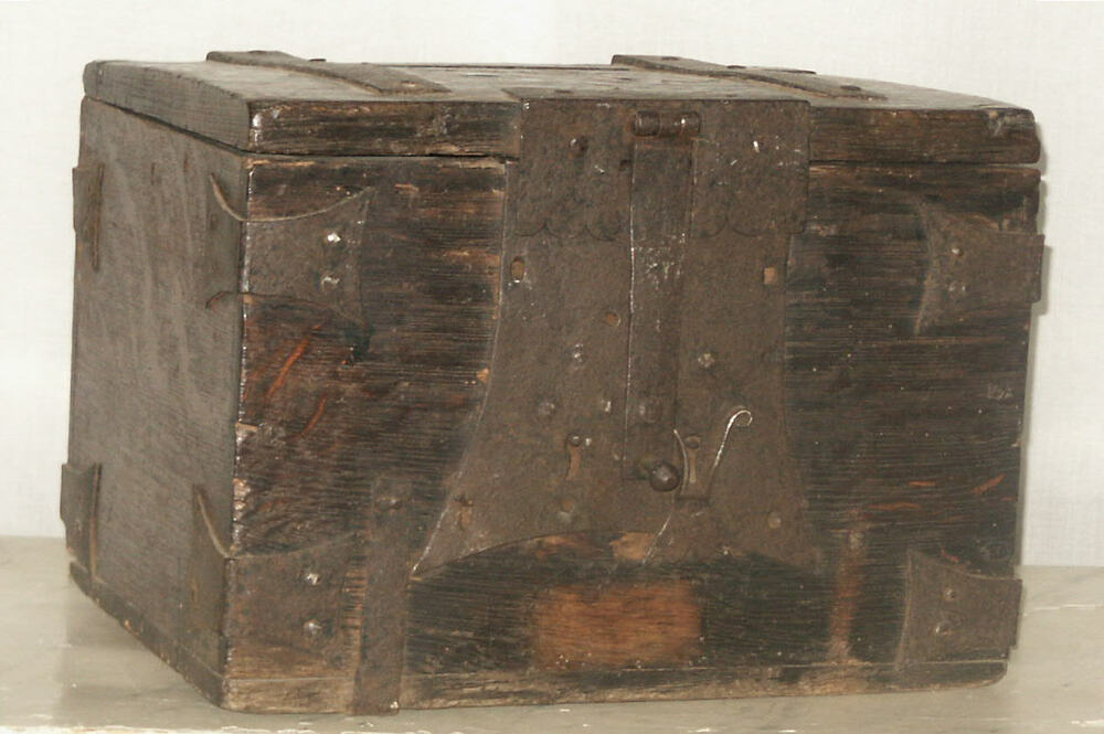 kist van hout met ijzeren beslag, vervaardigd circa ...