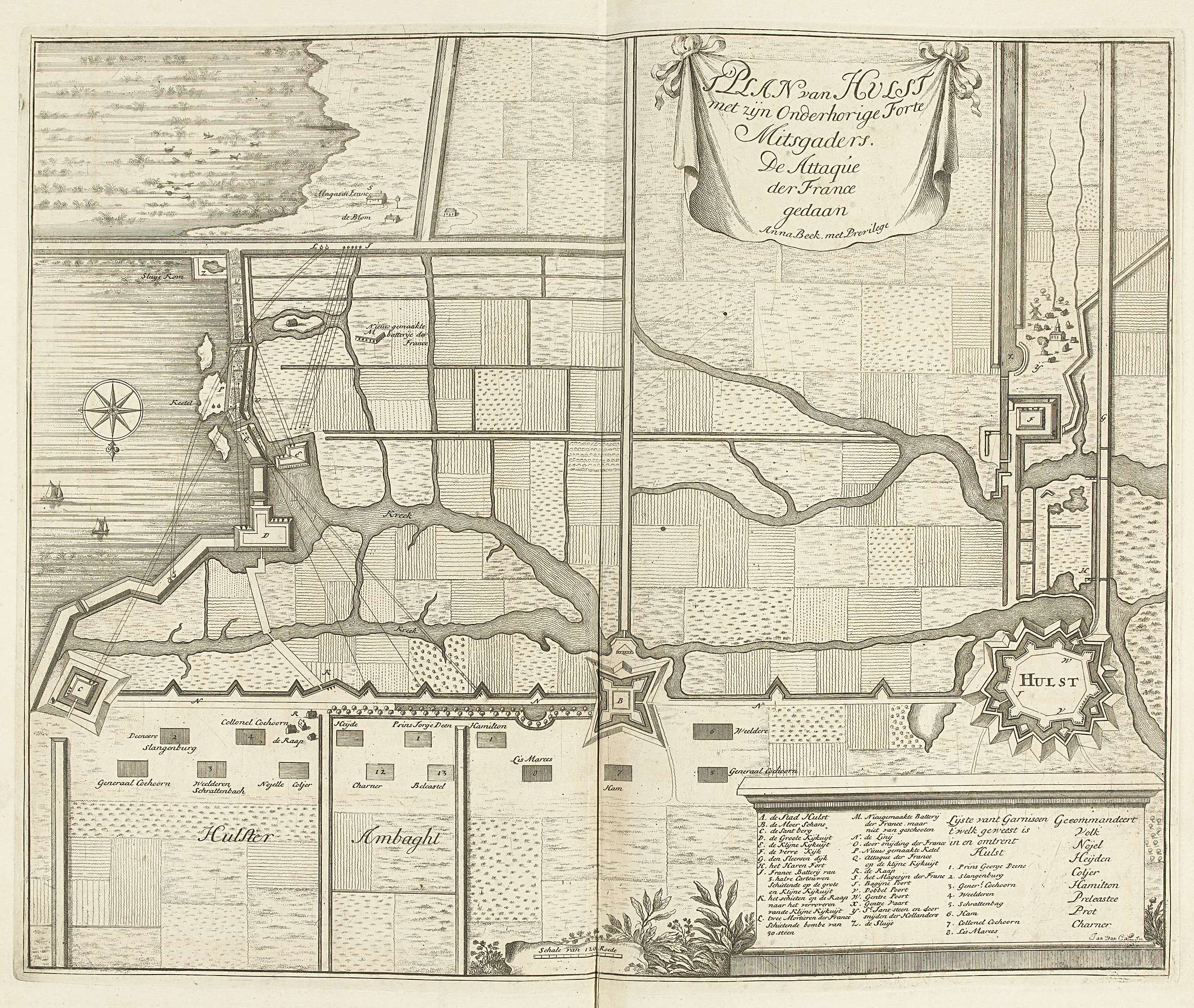 Kaart van de aanval van de Fransen op Hulst, 1702
