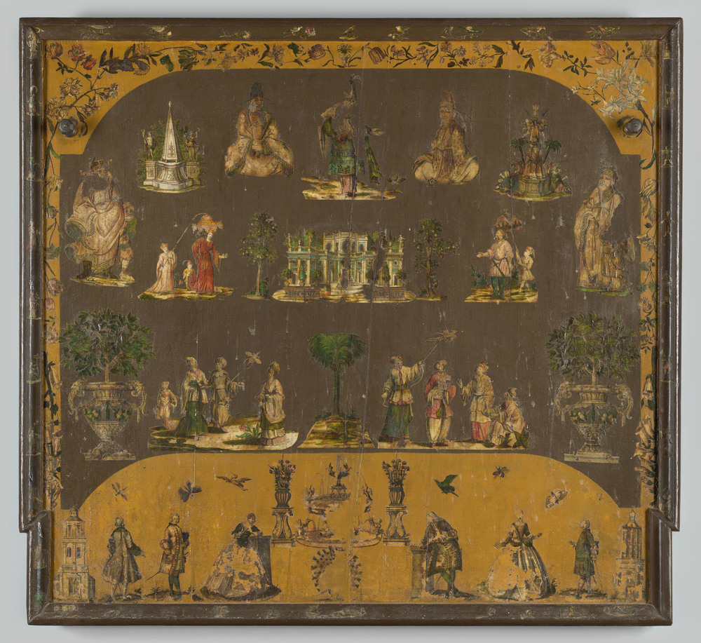 Vouwwaaier met cartouches met figuratieve voorstelli...
